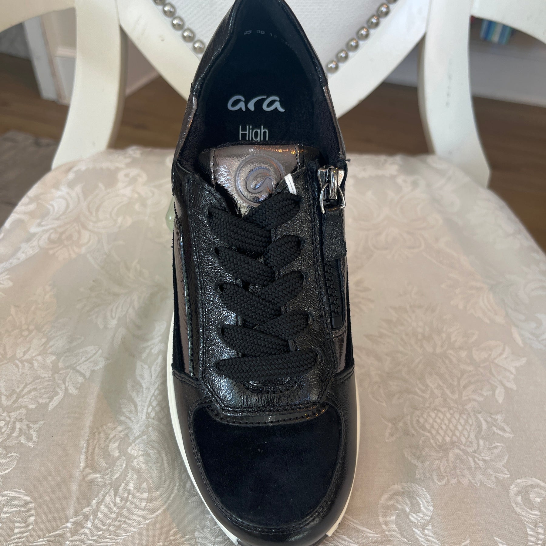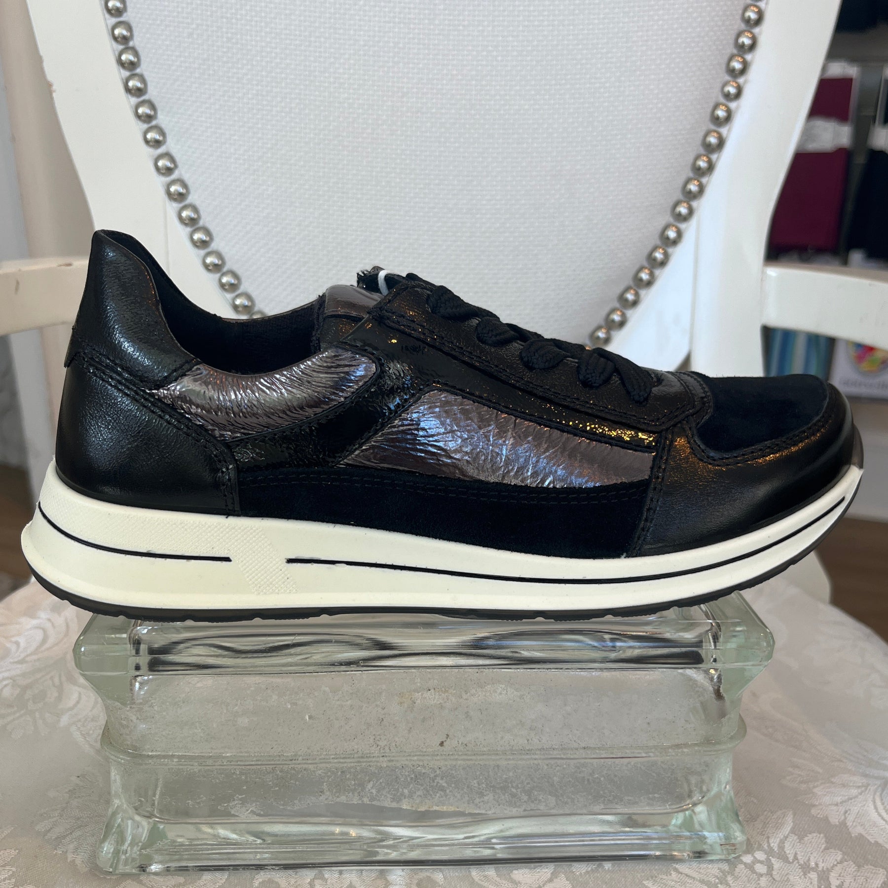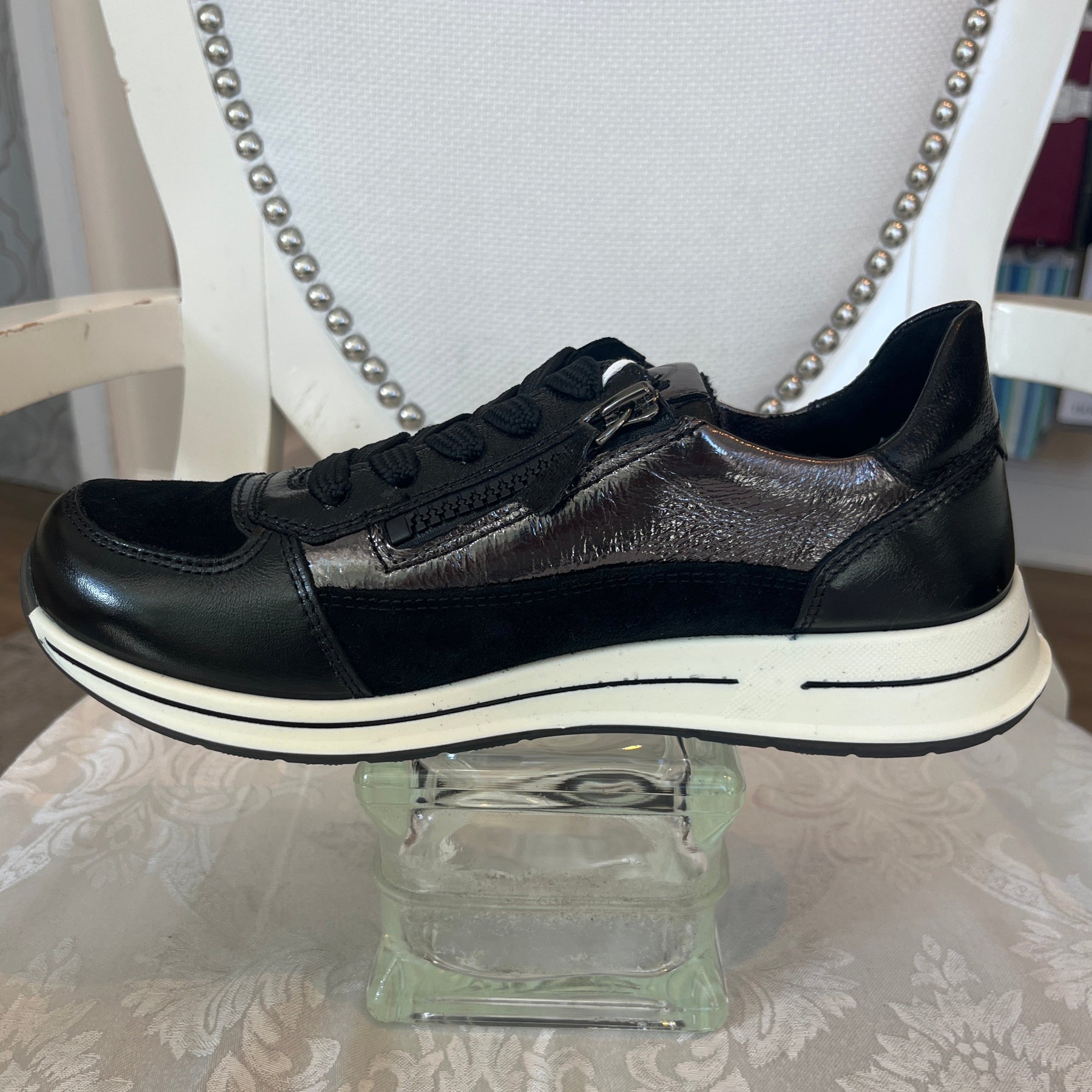 Obsidian black women's side zip lace sneaker is designed for the stylish woman with comfort in mind. Crafted from high-quality leather and suede2, the sneaker offers a side zip for easy entry, flexibility through every step, and a sleek, on-trend design. Our bamboo terry lining adds a soft touch. Enjoy a comfortable fit for any occasion with Obsidian Side Zip Lace Sneaker.